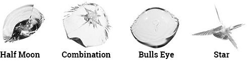 This type of windshield damage has multiple characteristics, such as a star within a bullseye, or a short or long crack stemming from that area. If the entire width of the damage does not exceed two inched, this can typically be repaired.